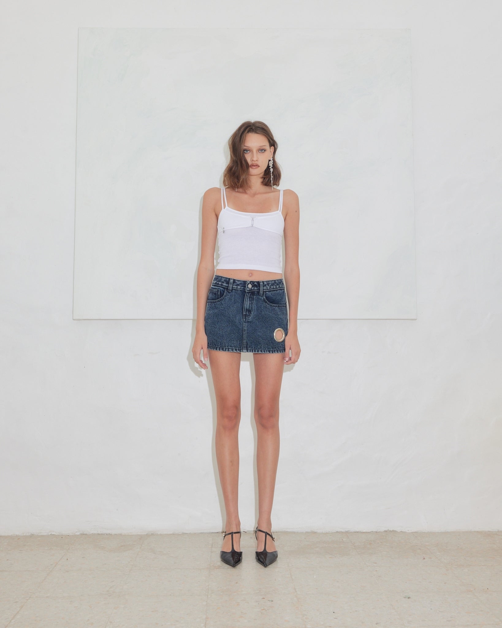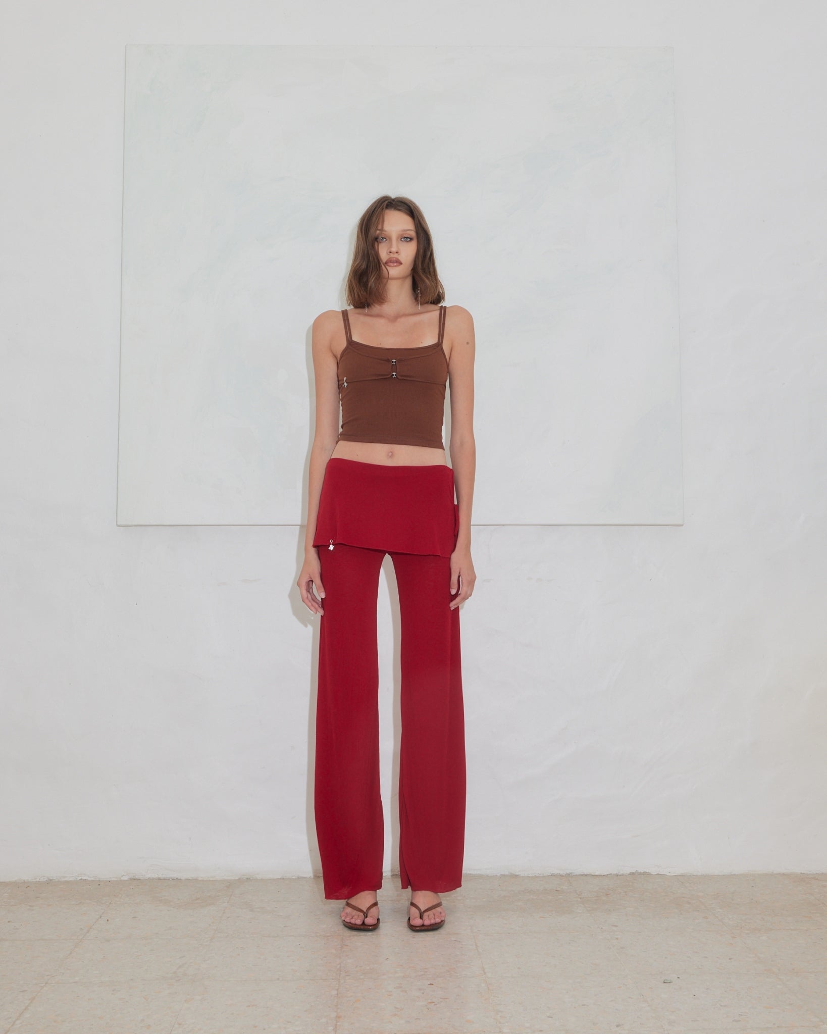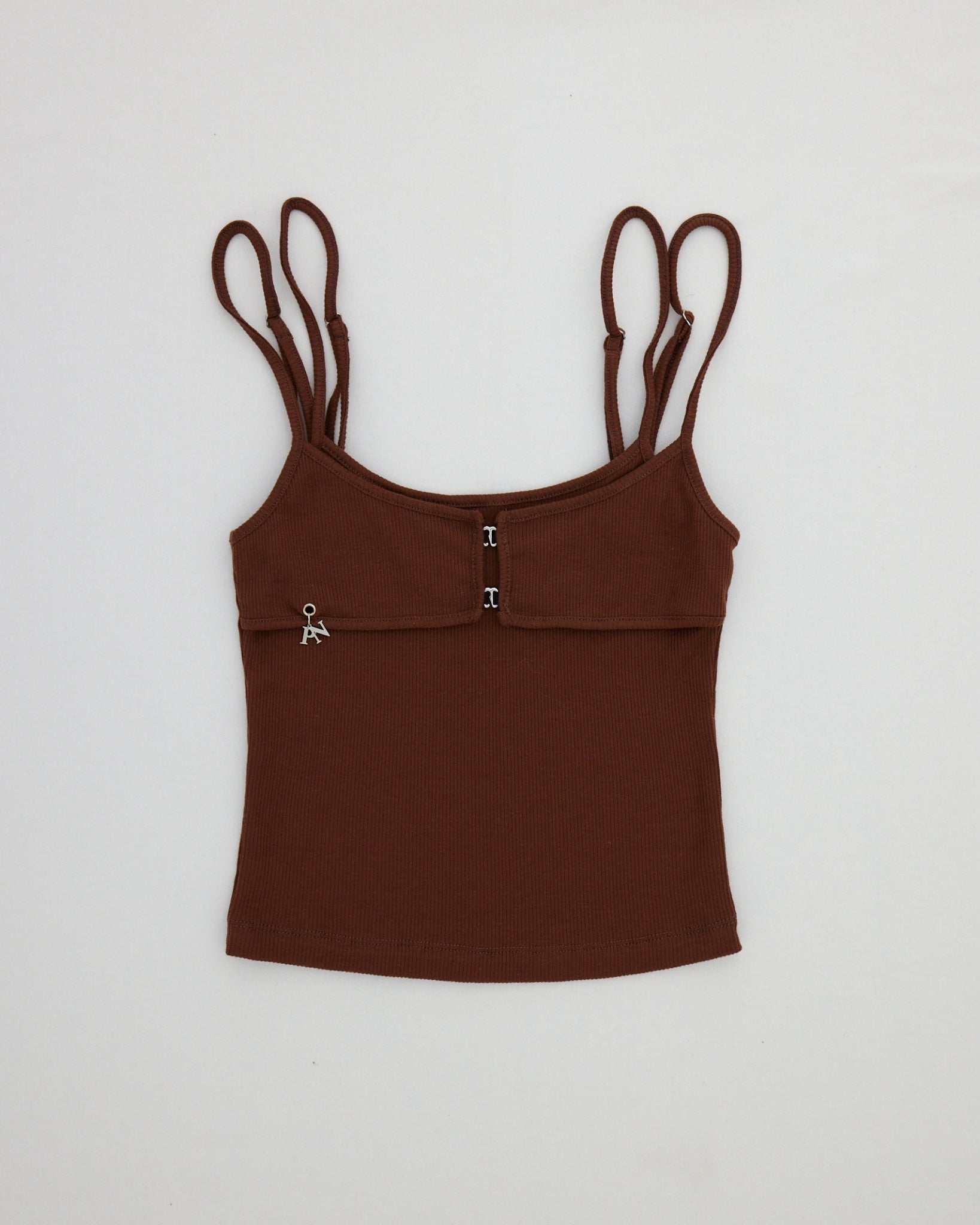 Ribbed Bralette Top, made from soft baby lib cotton, features double-layered with charm jewelry detailing on the side for a touch of elegance.
