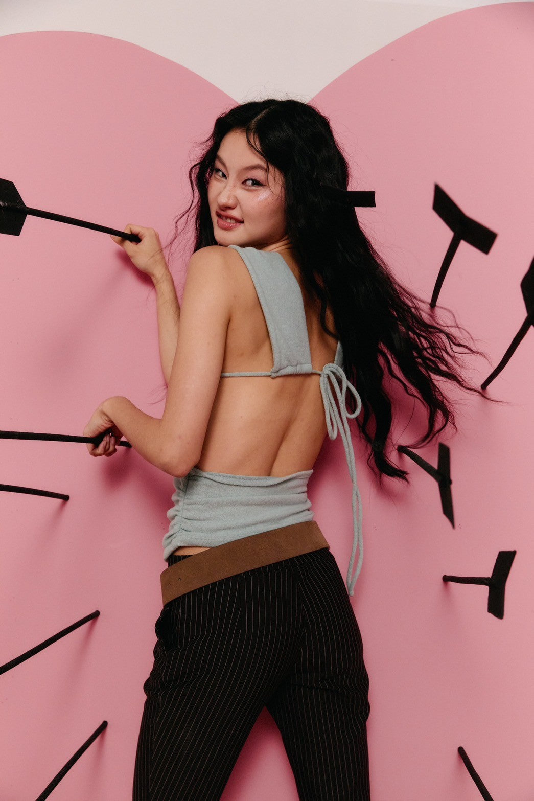 The Heartstrings Open Back Top, made from soft cotton wool spandex for the perfect stretch, featuring delicate bows at the back for a touch of romance. Effortlessly sexy, undeniably comfortable. Available in mint & ash.
