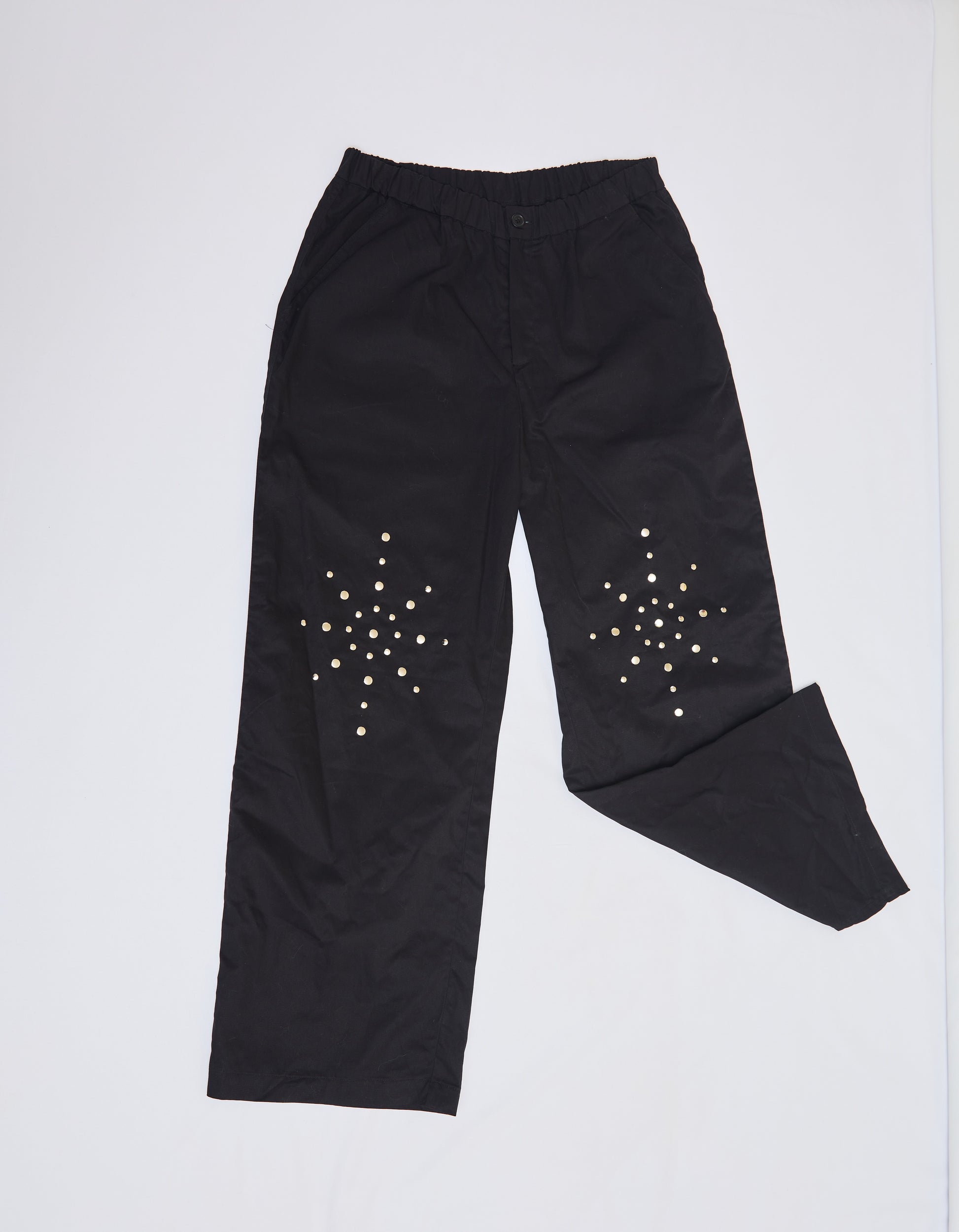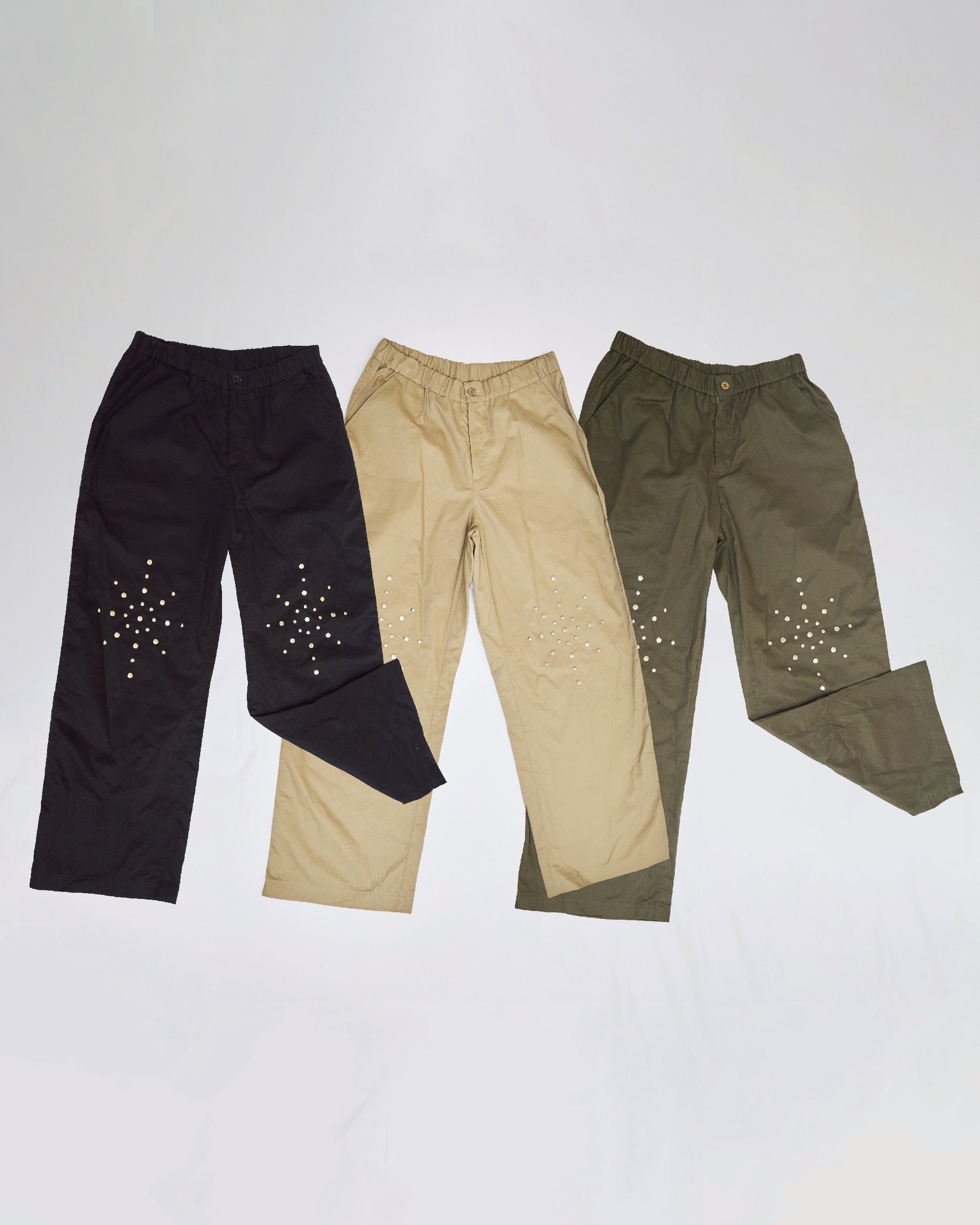 Made from Cotton Twill fabric, these low-waist pants feature star-studded details for a chic, edgy look. Easy to style with hoodies, t-shirts or crop tops. Available in black, army green, and khaki brown.