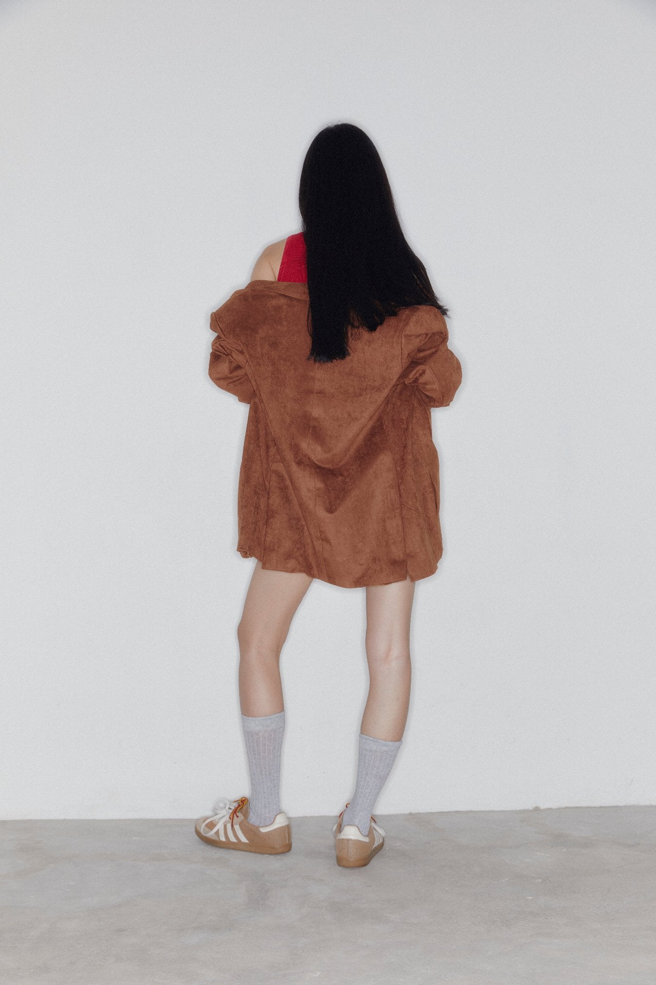 Introducing the Suede Oversized Blazer in Brown – a flawlessly tailored piece designed for the holiday season. Crafted from premium-quality suede, it offers a soft, luxurious feel that elevates any look. Featuring four front pockets and two discreet inner pockets, this blazer combines style and practicality. Whether you’re going for a casual, everyday vibe or dressing up for a formal occasion, this blazer is the perfect choice.